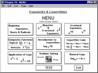 Ideal for basic algebra 1, advanced algebra 2 high school algebra students and college algebra students who need algebra help. Each algebra software program for Windows XP and Vista, or Macintosh OSX begins with the very basic pre-algebra concepts of the specific topic and moves methodically to the basic Algebra 1 MENU and then to the advanced algebra 2 MENU for the more advanced algebra 2 concepts. Each program contains its own test printable with or without the algebra help solutions.