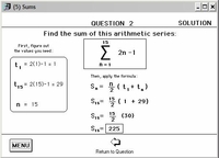Begin the study of sequences with arithmetic and geometric sequences by learning and using the formulas. Move on to the study of series -- both finite and infinite. Sums are taught by formula and use of "sigma notation". Factorials, powers of binomials and binomial expansion using the binomial theorem round out this comprehensive program. The program concludes with problem solving and a test printable with or without solutions. Available for immediate download.